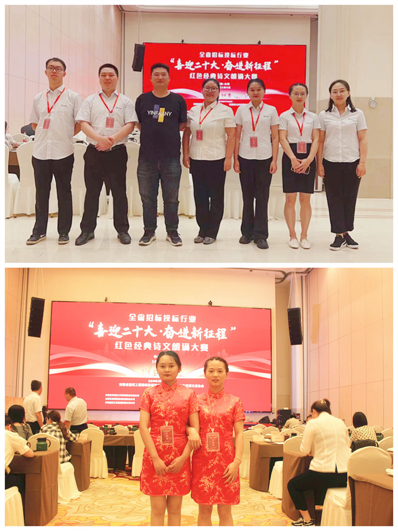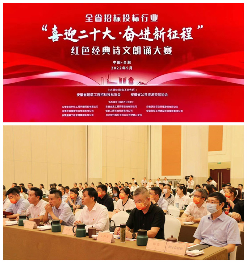 誦讀紅色經典,賡續(xù)紅色血脈。9月30日,由安徽省建筑工程招標投標協會、安徽省公共資源交易協會聯合主辦的全省建筑工程招標投標行業(yè)“喜迎二十大·奮進新征程”紅色經典詩文朗誦決賽在合肥市白金漢爵酒店正式拉開帷幕,我司參賽作品《永遠跟黨走·共筑中國夢》榮獲三等獎,并且作為協辦單位,出色完成各項任務,受到行業(yè)單位的認可,獲得“優(yōu)秀組織獎”。