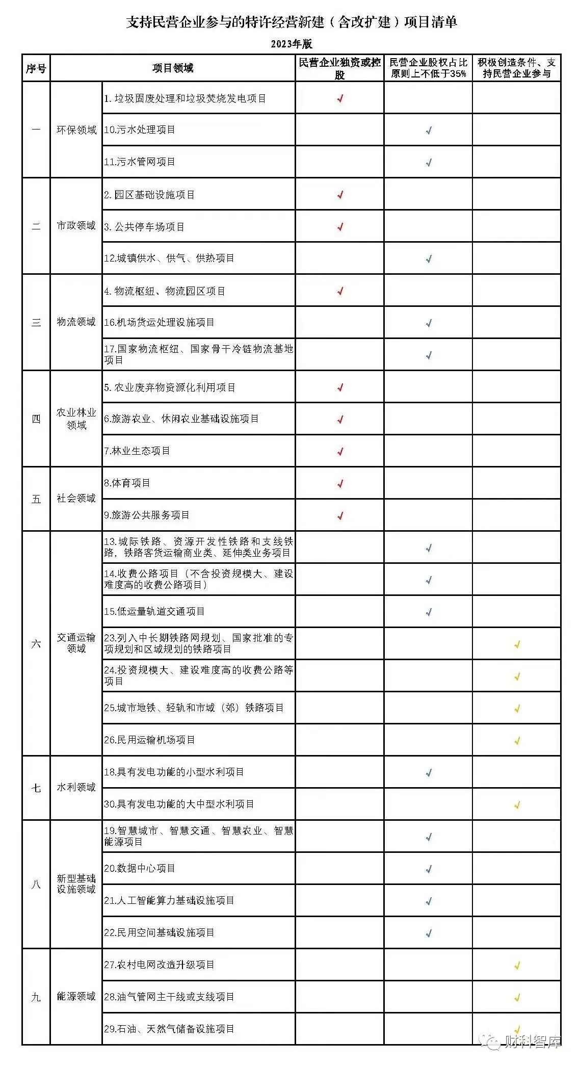 關(guān)系國計民生、公共屬性較強的項目(污水處理,城鎮(zhèn)供水、供熱、供氣,城際鐵路,智慧城市,數(shù)據(jù)中心等),民營企業(yè)股權(quán)占比原則上不低35%;