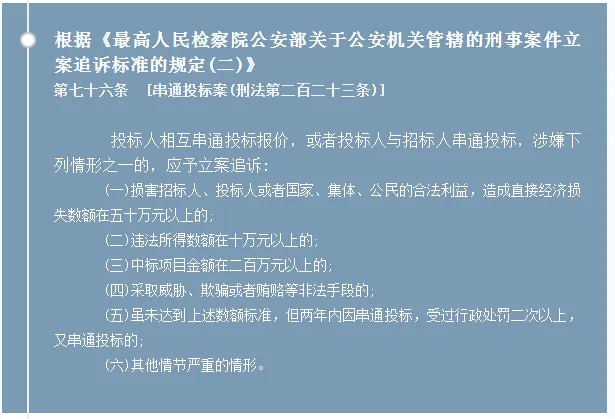 串通投標罪立案標準