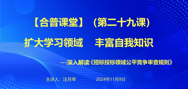 11 月 9 日,集團內部課堂培訓迎來了第 二十九期,此次培訓聚焦于對行業(yè)發(fā)展有著重要影響的《招標投標領域公平競爭審查規(guī)則》(八部委令第 16 號),由集團招標部總工程師汪月琴擔任主講人,為集團員工帶來了一場干貨滿滿的專業(yè)解讀。
