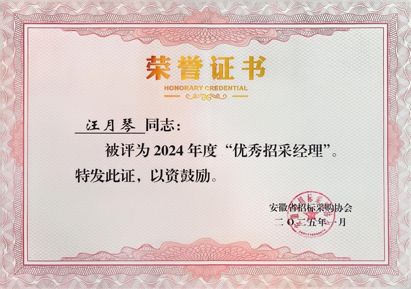 今日上午,一則喜訊傳來(lái),集團(tuán)公司在安徽省招標(biāo)采購(gòu)協(xié)會(huì)的評(píng)選活動(dòng)中榮獲多項(xiàng)殊榮。一舉獲得 “2024 年度優(yōu)質(zhì)招標(biāo)代理機(jī)構(gòu)”、“2024 年度安徽省招標(biāo)采購(gòu)協(xié)會(huì)專家?guī)鞈?yīng)用優(yōu)質(zhì)單位”、“2024 年度招標(biāo)信息發(fā)布規(guī)范單位” 三項(xiàng)榮譽(yù)。與此同時(shí),集團(tuán)王少玲、史新軍、汪月琴三位同志,憑借卓越表現(xiàn),榮獲 “2024 年度優(yōu)秀招采經(jīng)理”稱號(hào)。