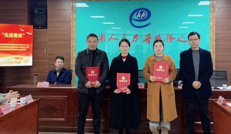 先進集體獲獎集體:集團造價部、定遠分公司、黃山分公司、淮北分公司(從左至右)