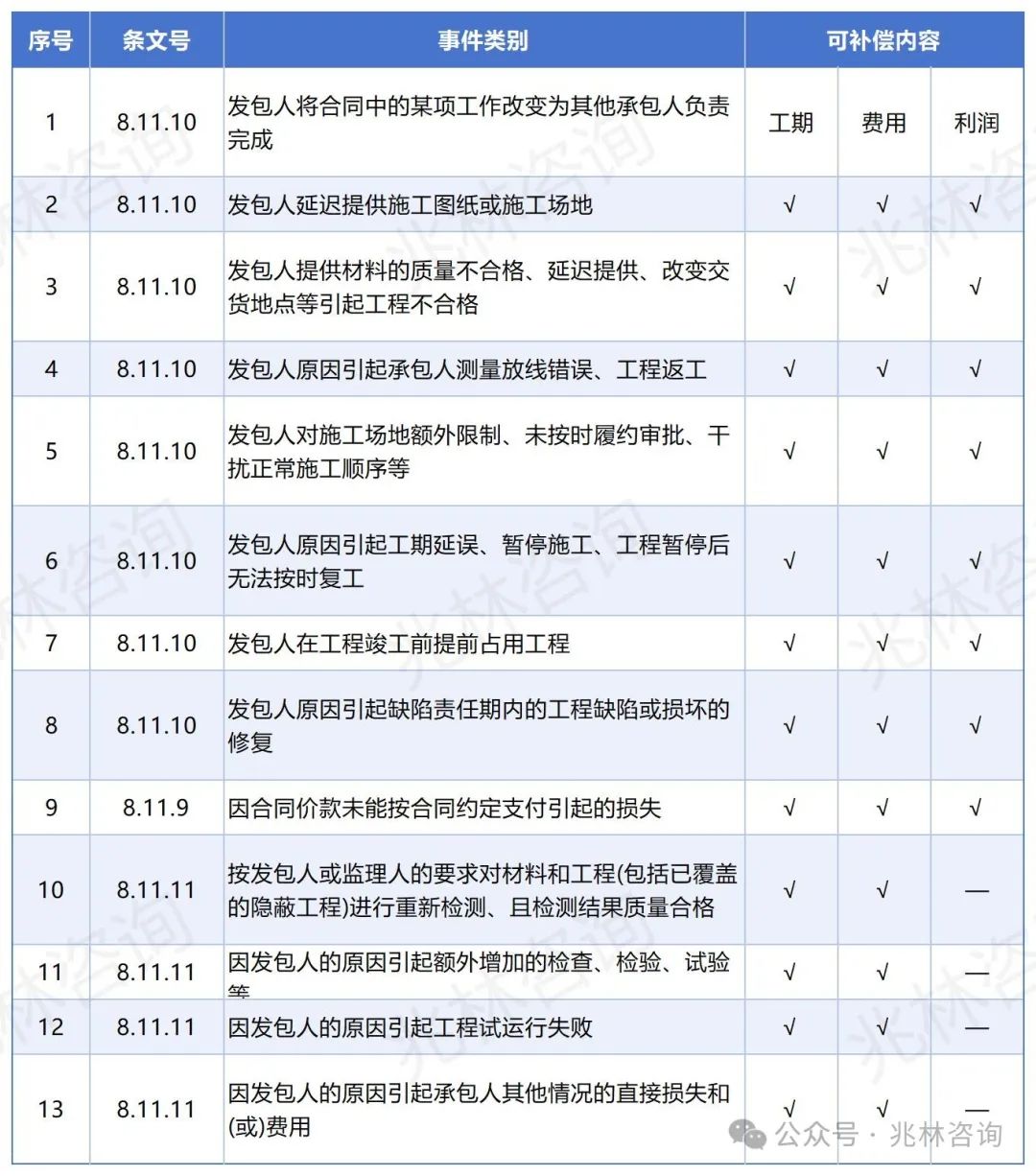 二、工程索賠價(jià)格調(diào)整一承包人可索賠情形