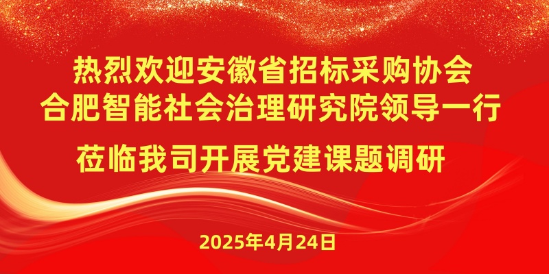 4月24日,省招標(biāo)采購協(xié)會黨支部書記賈海波、合肥智能社會治理研究院高級研究員一行蒞臨我司,圍繞企業(yè)黨建工作開展專題調(diào)研。集團領(lǐng)導(dǎo)高度重視此次調(diào)研活動,黨務(wù)工作者焦愛麗作綜合匯報,雙方就黨建工作成效與不足,創(chuàng)新實踐及未來發(fā)展方向展開深入交流。