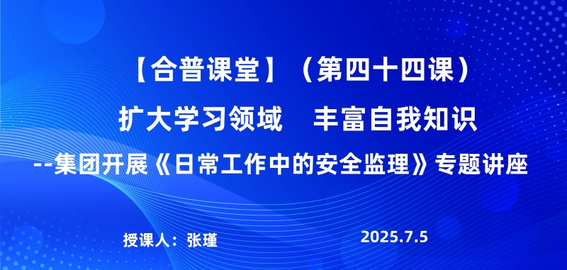 7月5日,集團(tuán)監(jiān)理部總監(jiān)理工程師張瑾在第四十四期合普課堂主講“日常工作中的安全監(jiān)理”,結(jié)合全國第24個(gè)安全生產(chǎn)月“人人講安全、個(gè)個(gè)會(huì)應(yīng)急”主題,深入解析安全監(jiān)理的核心職責(zé)與實(shí)踐要點(diǎn)。