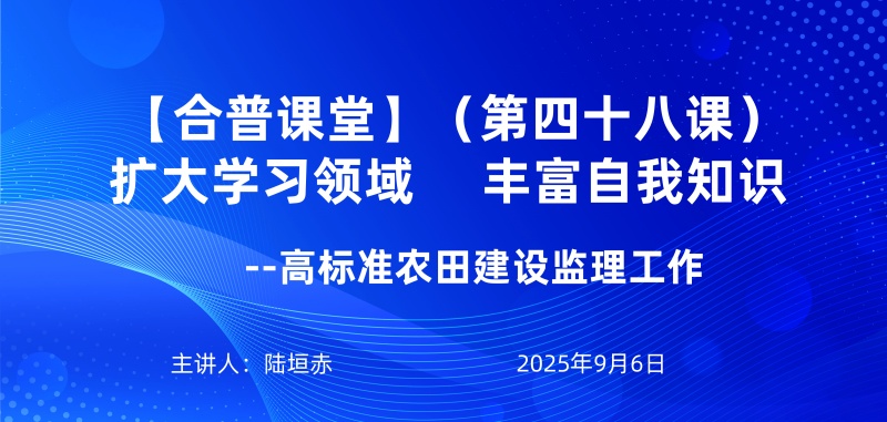 9月6日,【合普課堂】第48期順利開講,本次課程由合普集團工程監(jiān)理部經理陸垣赤擔任主講,圍繞“高標準農田建設監(jiān)理工作”展開了一場內容扎實、貼近實戰(zhàn)的分享。