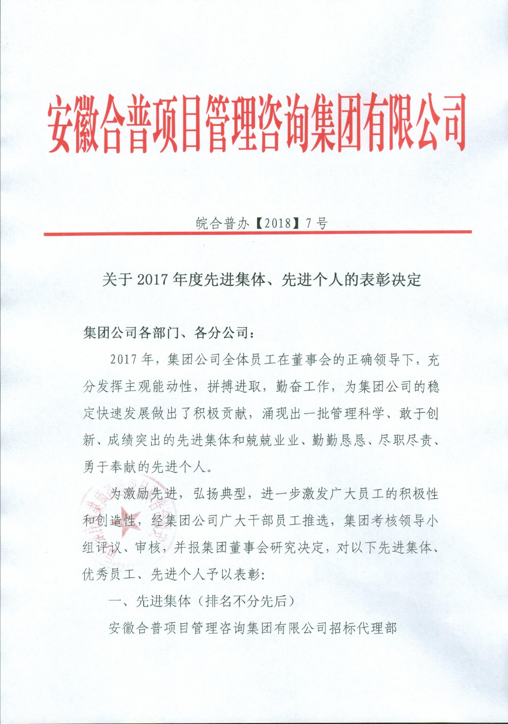 關(guān)于2017年度先進(jìn)集體、先進(jìn)個(gè)人的表彰決定