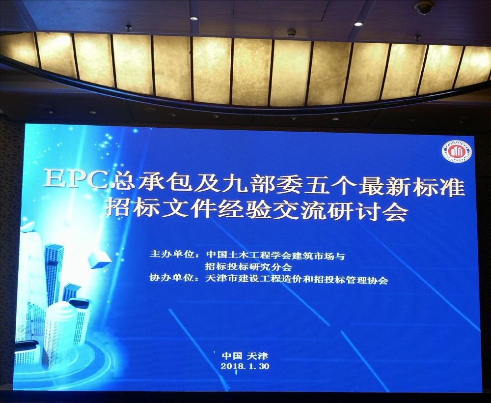 2018年1月30日,由中國土木學會建筑市場與招標投標研究分會主辦的首屆‘EPC總承包及九部委會五個最新標準招標文件經(jīng)驗交流研討會’在天津召開董事長張道祥參加了本次研討會。