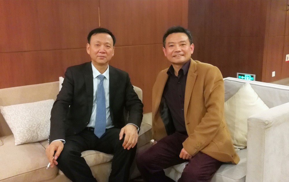 張道祥與安連發(fā)秘書長在會場外休息室交談