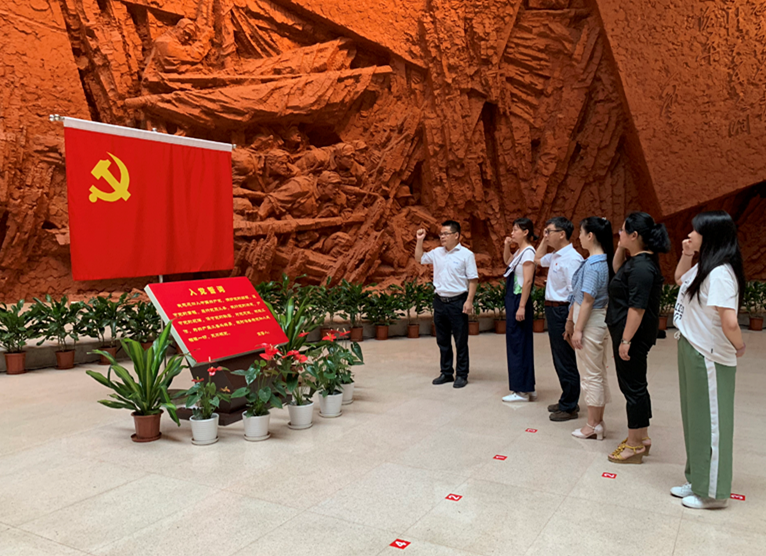 集團(tuán)全體黨員參觀了展廳陳列的《百萬(wàn)雄師過(guò)大江》的宏偉雕塑,并在黨旗下進(jìn)行莊嚴(yán)的宣誓。