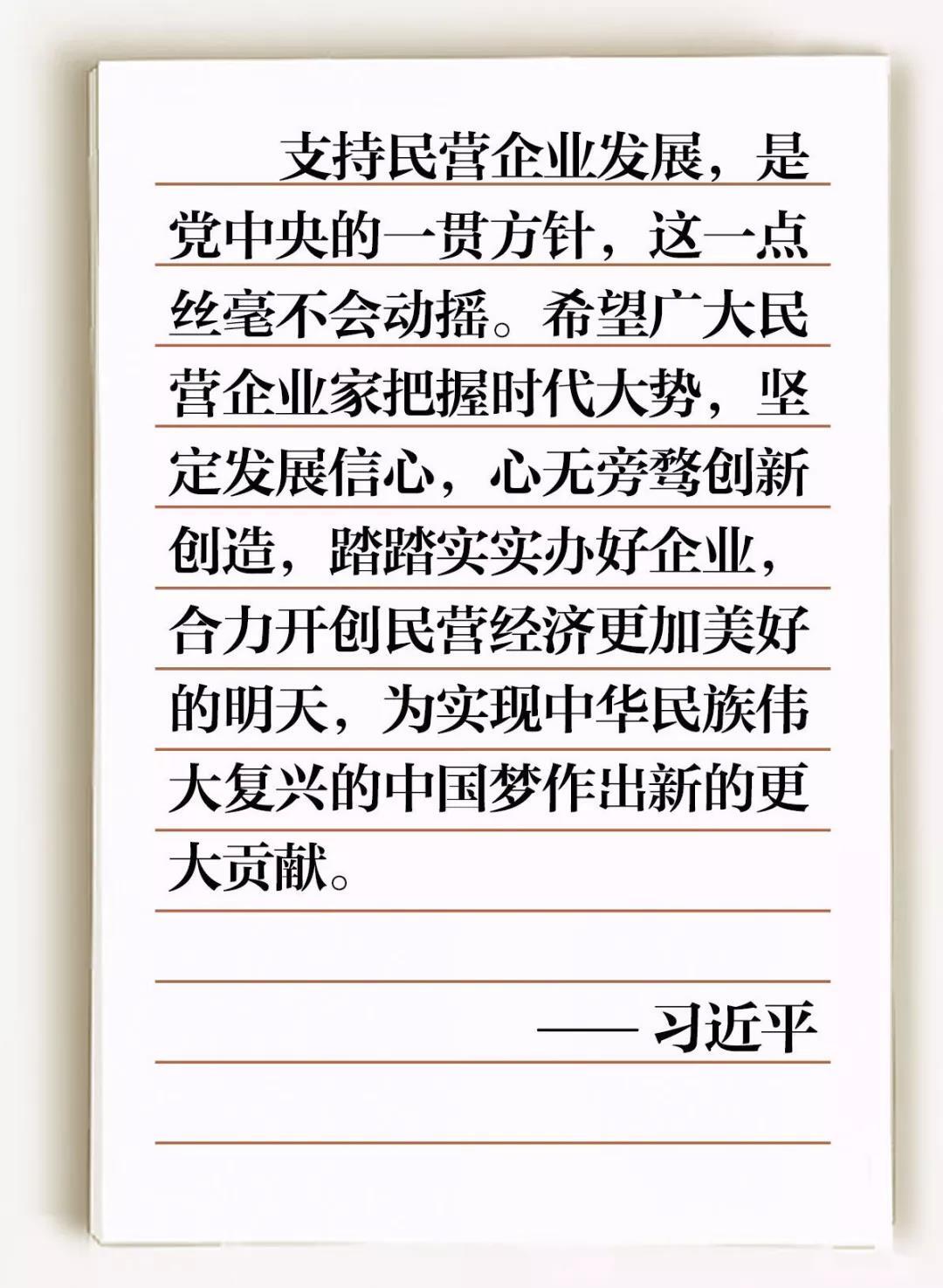 2018年10月20日,習(xí)近平總書記給“萬企幫萬村”行動中受表彰的民營企業(yè)家回信,鼓勵他們“心無旁騖創(chuàng)新創(chuàng)造,踏踏實實辦好企業(yè),合力開創(chuàng)民營經(jīng)濟更加美好的明天”。習(xí)近平總書記回信后,廣大民營企業(yè)家心氣更高、干勁更足。