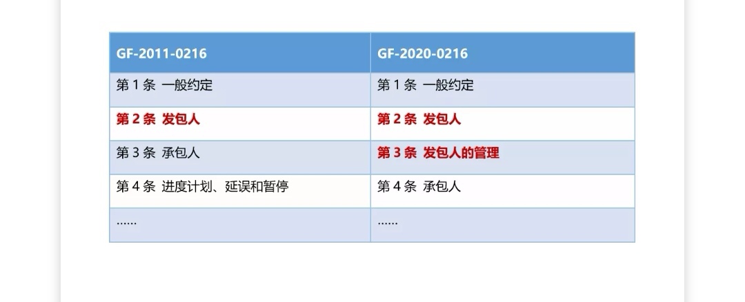 2020版合同示范文本的突出變化之一就是增加了“工程師”的相關(guān)內(nèi)容,取代了原示范文本(指代2011-0216版工程總承包合同示范文本,下同)中“監(jiān)理人”的相關(guān)內(nèi)容。從條款體例而言,原示范文本在第2條[發(fā)包人]中的第2.3條[監(jiān)理人]對工程監(jiān)理的內(nèi)容作了簡要規(guī)定;而2020版示范文本關(guān)于工程師的內(nèi)容集中體現(xiàn)在第3.3條[工程師]、第3.4條[任命與授權(quán)]、第3.5條[指示]、第3.6條[商定或確定]中,幾乎占據(jù)了第3條[發(fā)包人管理]的大部分篇幅,足以凸顯出新版合同中對于該制度的重視。從合同條款的編制角度而言,2020版示范文本也將原示范文本第2條[發(fā)包人]進(jìn)行了細(xì)化、增補(bǔ)和完善,形成了第2條[發(fā)包人]和第3條[發(fā)包人的管理]兩部分內(nèi)容(見表1)。